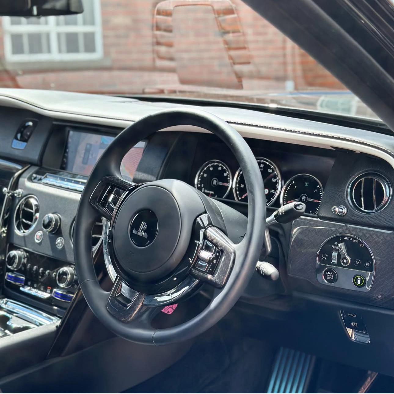 Distinctive Design: Blacked-out exterior details and signature Rolls-Royce styling give the Cullinan Black an aggressive yet elegant presence.